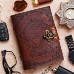 vintage handmade leather journal. Crafted with genuine leather, it radiates authenticity and charm, perfect for those who appreciate classic craftsmanship. The premium antique lock closure adds a touch of elegance and security, ensuring your thoughts and memories are safeguarded within its pages. Inside, you’ll discover 200 White handmade pages, providing ample space for your musings, sketches, and stories to unfold. Whether it’s for journaling, sketching, or planning, this versatile journal is a timeless companion for your creative endeavors. Treat yourself or a loved one to this exquisite piece, a celebration of tradition and creativity