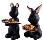 Set of 2 Rabbits in Black Decorative Showpiece for Home Decor Showpiece | Home Kitchen Decor | Office Decorative Item – 13 cm